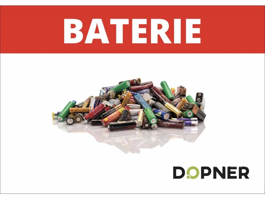 Plastová popelnice, jejíž barva a označení ukazují, že do ní patří použité baterie, které je také třeba třídit. Červenou barvu přiřadily bateriím evropské standardy pro recyklaci odpadu. Do takto zbarvené nádoby lze směřovat nejrůznější monočlánky, knoflíkové baterie, baterie pohánějící notebook či mobilní telefon, ale také nabíječky od nabíjecích baterií či power banky. Prosíme, v zájmu svém i v zájmu životního prostředí nevhazujte baterie ani jiný elektroodpad do směsného odpadu, vždy využijte speciální nádoby, jako je tato.