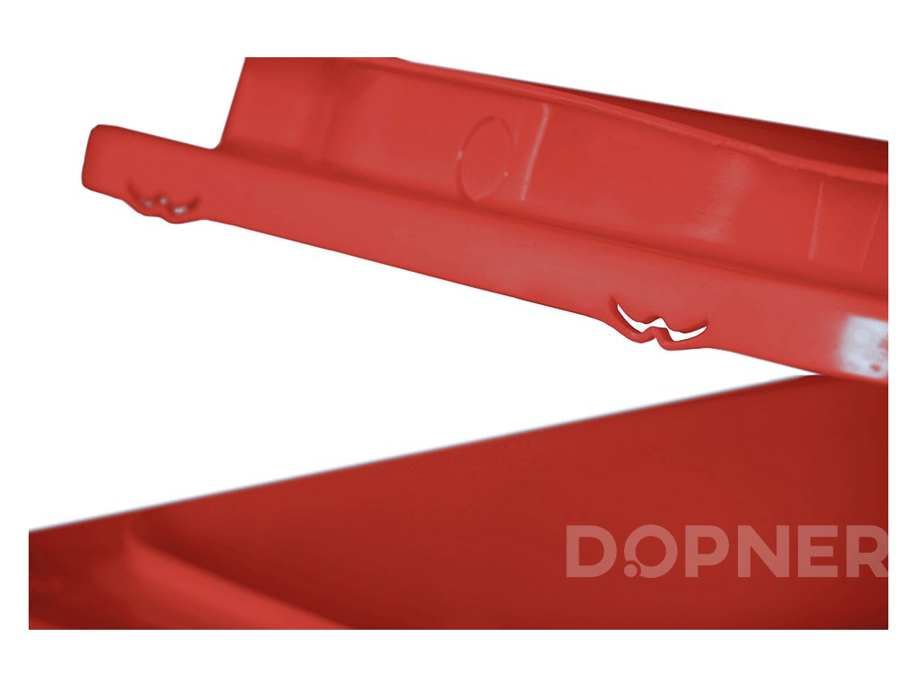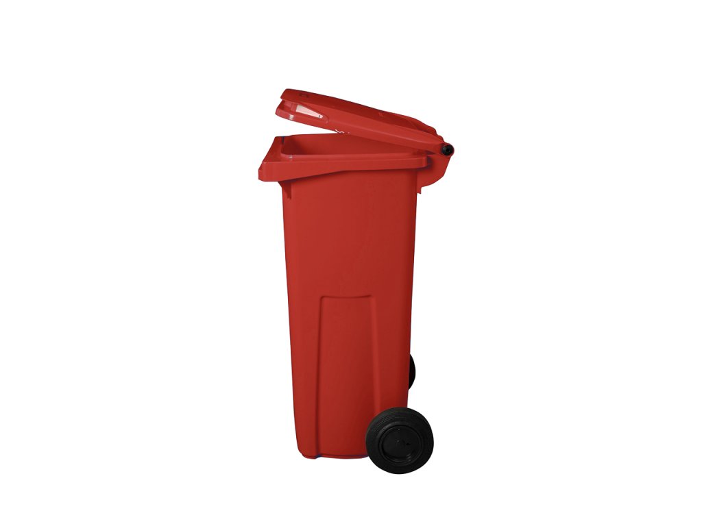 Červená plastová popelnice na baterie DOPNER 120 l se zámkem a vhozem