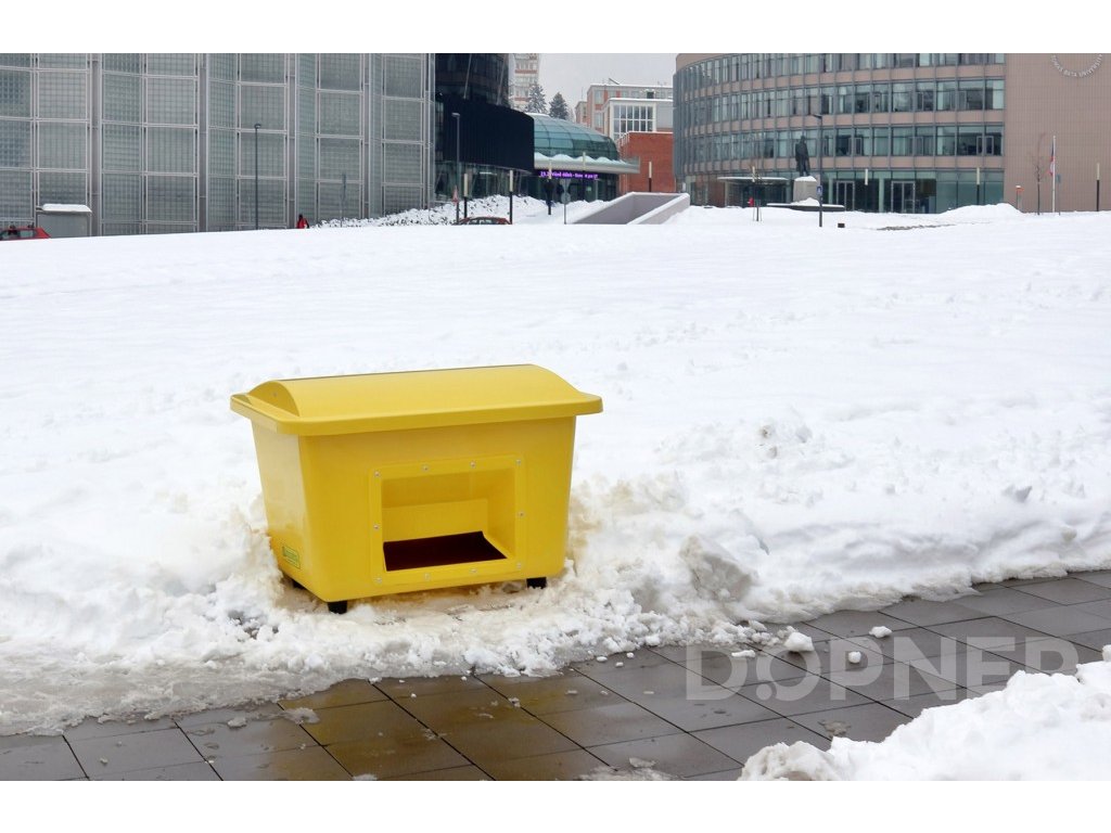 Získejte pro zimní posyp praktickou nádobu! Kontejner na posypový materiál se pyšní špičkovou kvalitou a pevností. Disponuje objemem 420 litrů a díky minimalistickému tvaru a příjemné žluté barvě designově zapadne jak na zahradu, tak na jiné místo jakéhokoliv pozemku.