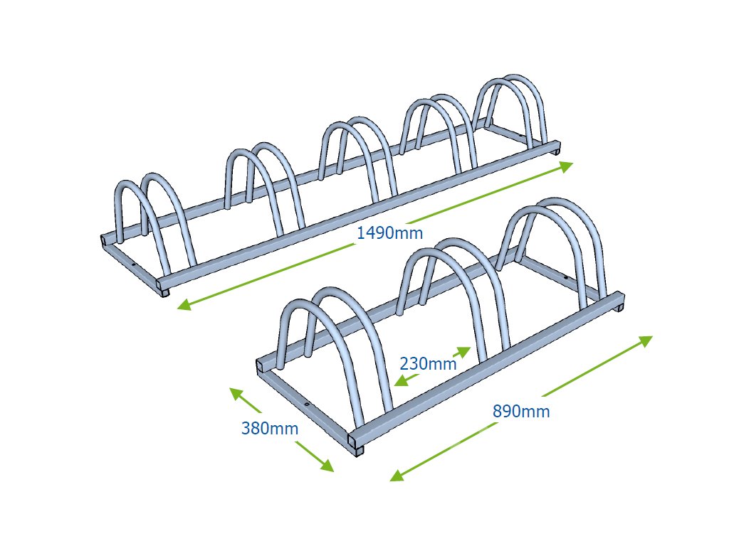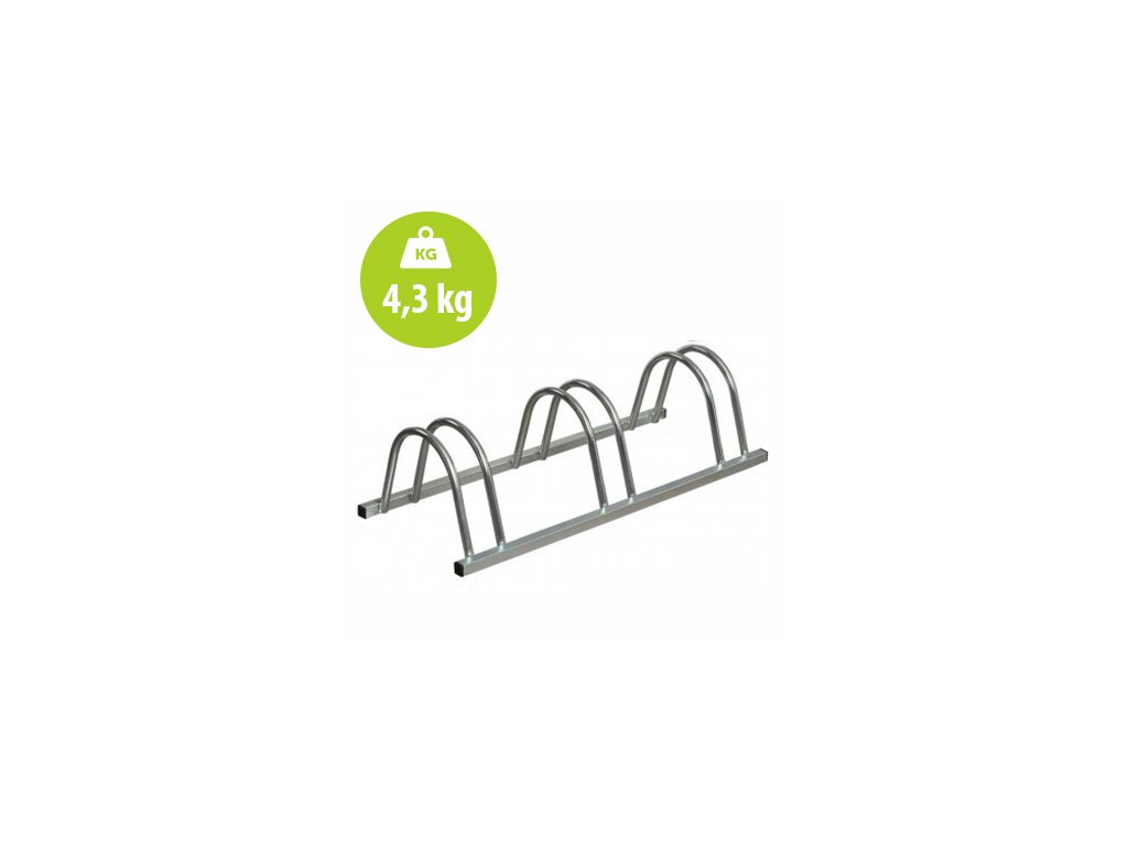 Podélný rám stojanu pro 3 kola, který představuje základnu, tvoří svařené profily 25 × 25 mm, oblouky pak trubky o průměru 18 mm. Finální galvanické kování celého stojanu zajišťuje odolnost vůči korozi, a tak i dlouhou životnost těchto stojanů.