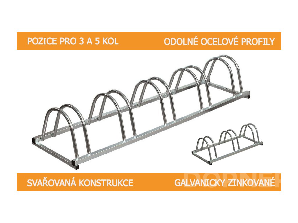 Podélný rám stojanu, který představuje základnu, tvoří svařené profily 25 × 25 mm, oblouky pak trubky o průměru 18 mm. Finální galvanické kování celého stojanu zajišťuje odolnost vůči korozi, a tak i dlouhou životnost těchto stojanů na 5 kol.