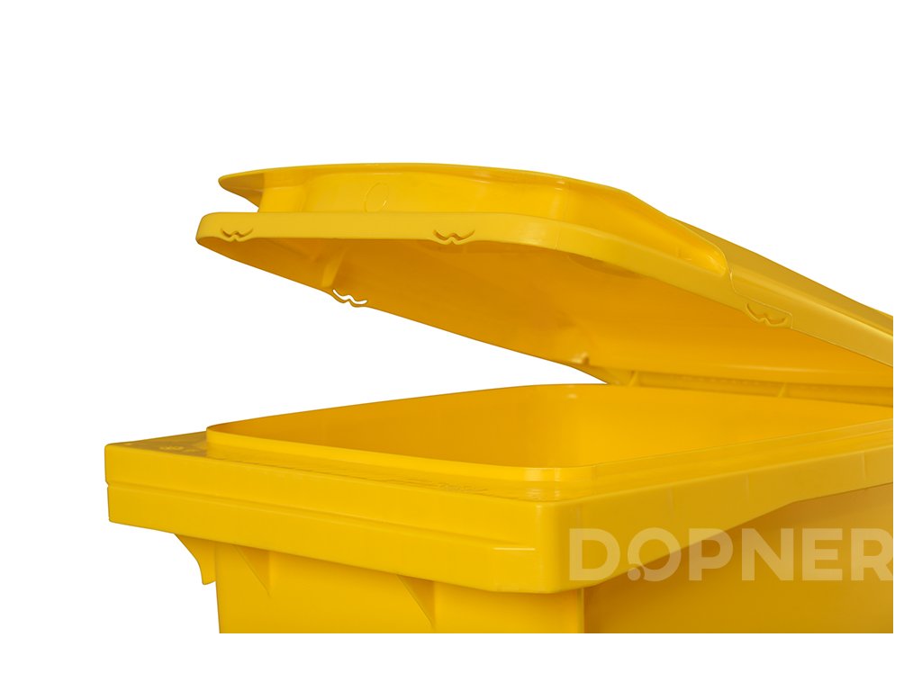 Žlutá plastová popelnice na plasty DOPNER 240 l s vhozem